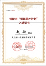 九、趙敏繼曾獲得安徽省技術(shù)創(chuàng)新領(lǐng)軍人才稱號(hào)后,2020年又入選銅陵市銅都英才計(jì)劃,被中共銅陵市委、銅陵市人民政府授予首批銅陵市領(lǐng)軍人才稱號(hào)。